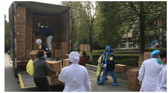 1月27日,德邦快递苏州枢纽中心运送护目镜、消毒液至华中科技大学同济医学院附属协和医院、宜昌当阳市红十字协会。