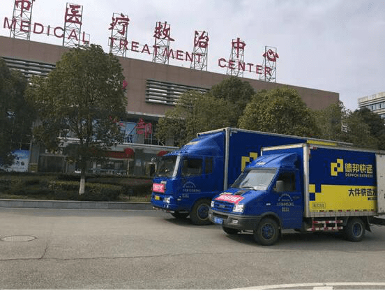 1月26日,德邦快递武汉枢纽中心运送通讯医疗设备至火神山医院、运送口罩至楚天都市报、运送物品至武汉大学人民医院、运送板房至雷神山医院、运送防护衣至武汉大学中南医院。